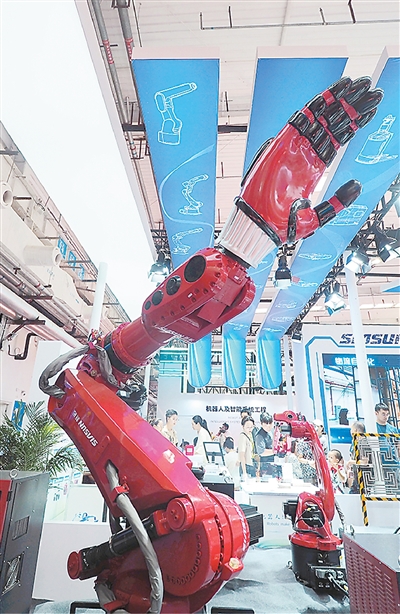 日前,正在东安汽车动力股份无限公司出产车间,工业机械人正在出产功课。记者 王 松摄